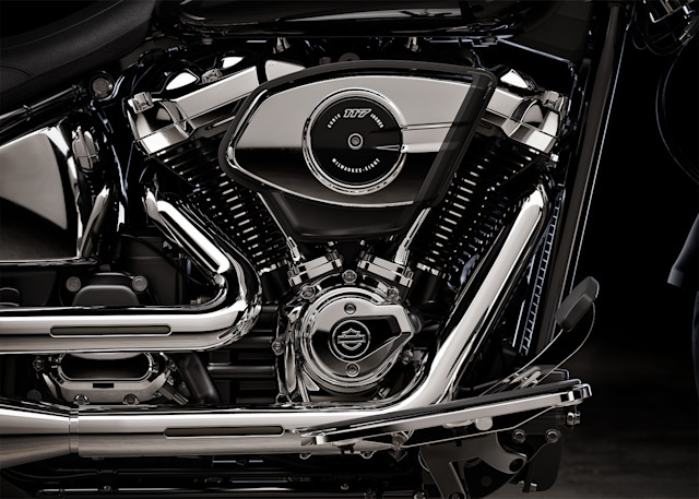Il Milwaukee-Eight 117 alimenta il Fat Boy esattamente con quello per cui è stato progettato: coppia generosa e potenza progressiva che donano alla sua struttura salda una rapidità inaspettata.