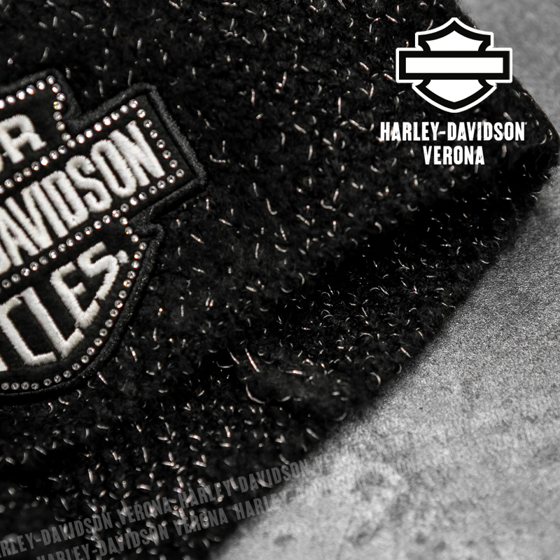 Stai al caldo con uno stile scintillante! Questo berretto è realizzato in filato misto acrilico 70% poliestere 26% e Spandex 3% per dargli ulteriore elasticità e ti dà il bel calore della lana, ma senza il suo tipico prurito. La brillantezza è data dalle fibre metallizzate e dagli strass della grafica ricamata sull’applicazione in feltro. Taglia unica.