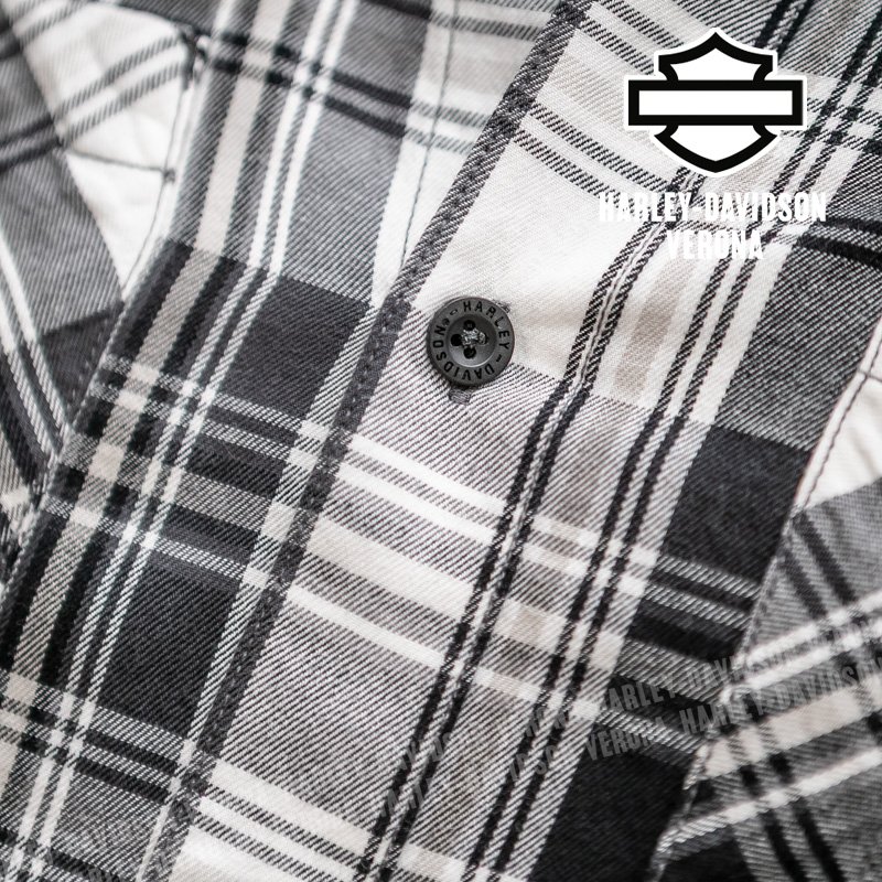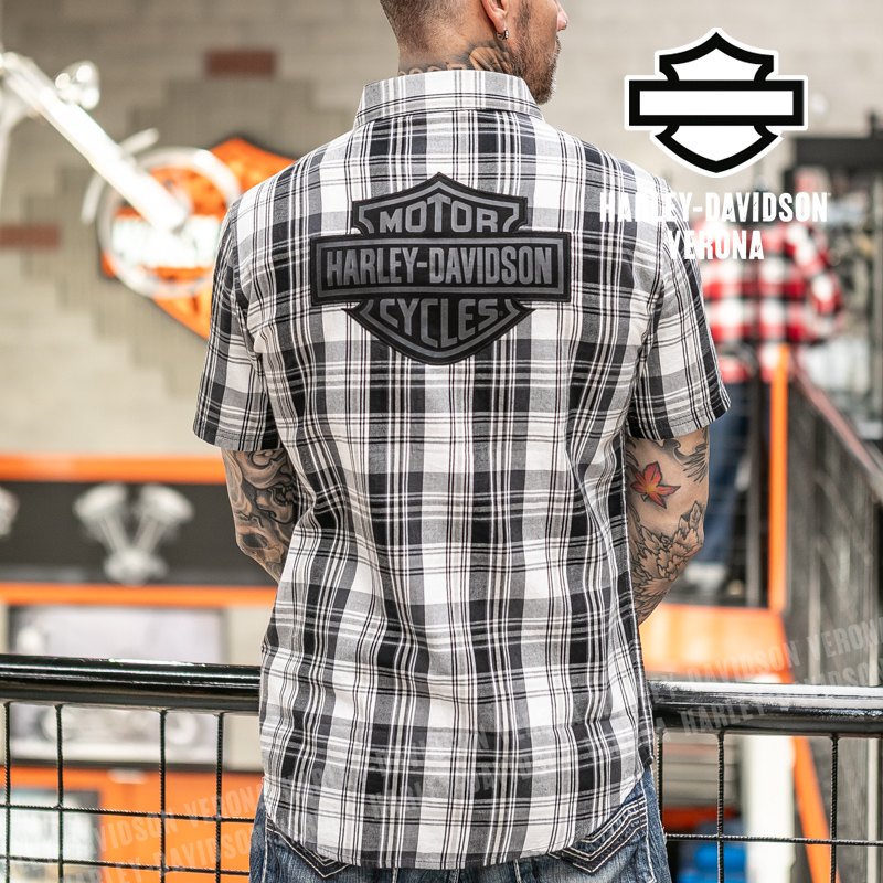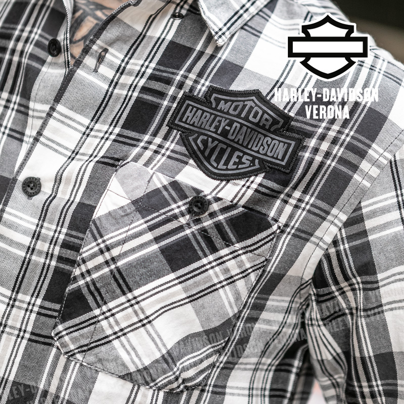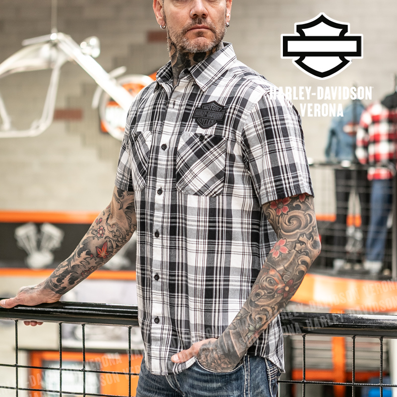La camicia a scacchi Bar & Shield è la quintessenza dell’intramontabile stile motociclistico! Realizzata all’insegna della leggerezza, per darti il massimo del comfort, è realizzata in twill leggero di puro cotone, resistente e traspirante, sottoposto a lavaggio ammorbidente ed è munita di taschino portapenne e di colletto con automatici nascosti, per stare in ordine anche sotto l’abbigliamento tecnico. Il capo è rifinito con una toppa sul davanti e sul dorso che raffigura una delle nostre grafiche più iconiche. Sebastiano è alto 190cm e indossa la taglia M.