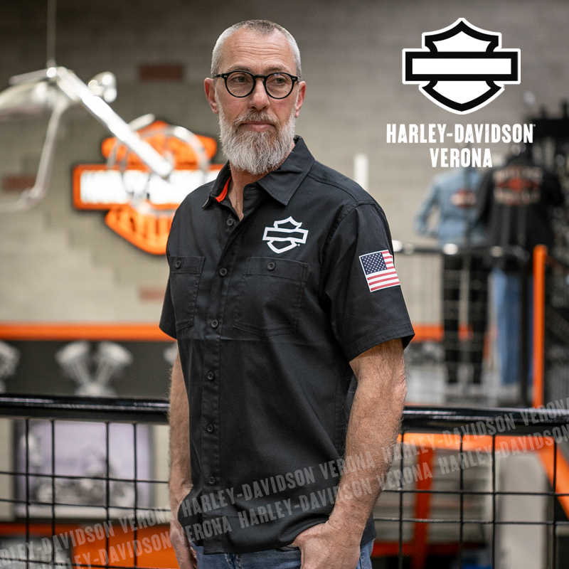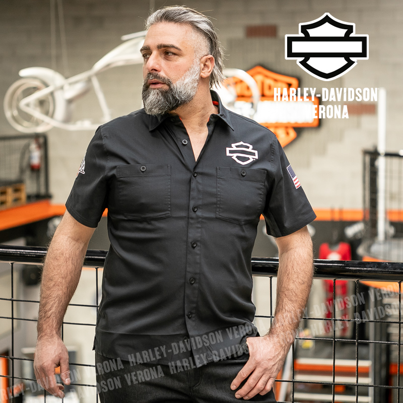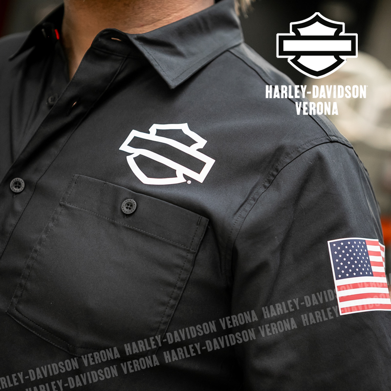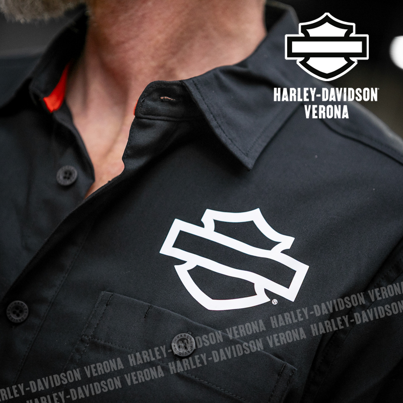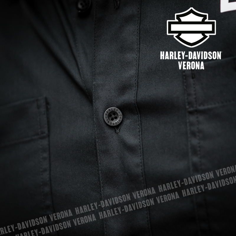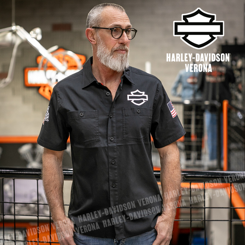 L’iconica collezione Factory Racing Team è tornata, con questa camicia UNISEX a maniche corte in 100% cotone, classico nero Harley, abbellita da grafiche scritte in bianco sulla schiena ed etichette ricamate e applicate. Acchiappala al volo, prima che finisca!