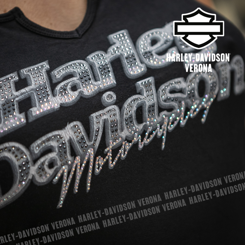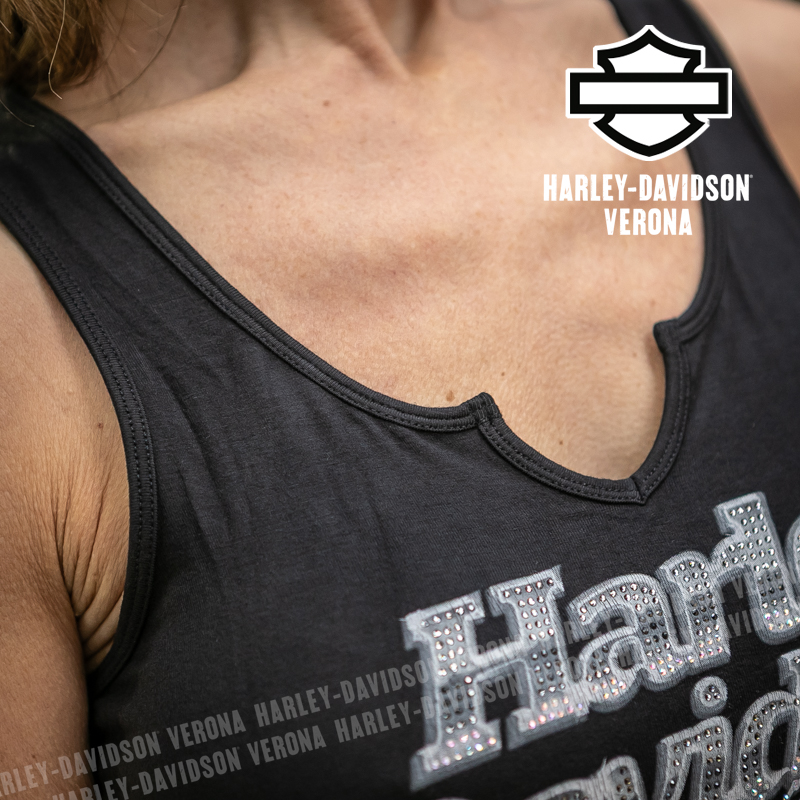 Il tuo look da motociclista prende una piega davvero elegante con la nostra canotta Bling Notch Neck! Questa edizione speciale è realizzata per garantirti un comfort duraturo grazie al jersey di rayon da 225 g/m² con un tocco di Spandex per una maggiore elasticità. È caratterizzata da una scollatura profonda con intaglio, dal retro in stile nuoto e dalle grafiche di ispirazione retrò decorate da strass. Ordinala prima che sia troppo tardi! Cristina è alta 165 cm e indossa la taglia XS.