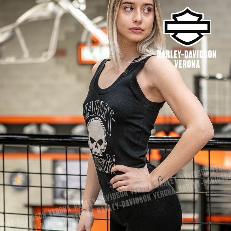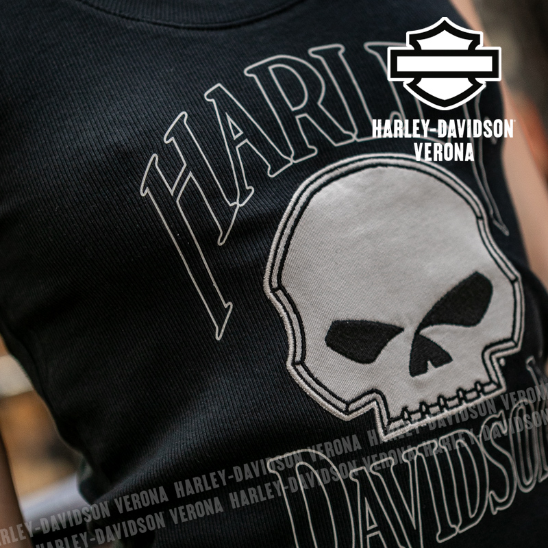 Questo modello vuole rendere omaggio alla sapienza artistica di Willie G. Davidson. Caratterizzata da una vestibilità aderente, questa canotta è realizzata in tessuto a coste cotone/modal, con un pizzico di spandex per aumentare l’elasticità. La canotta sfoggia inoltre uno scollo profondo, ed è rifinita con la classica immagine di Willie G Skull.