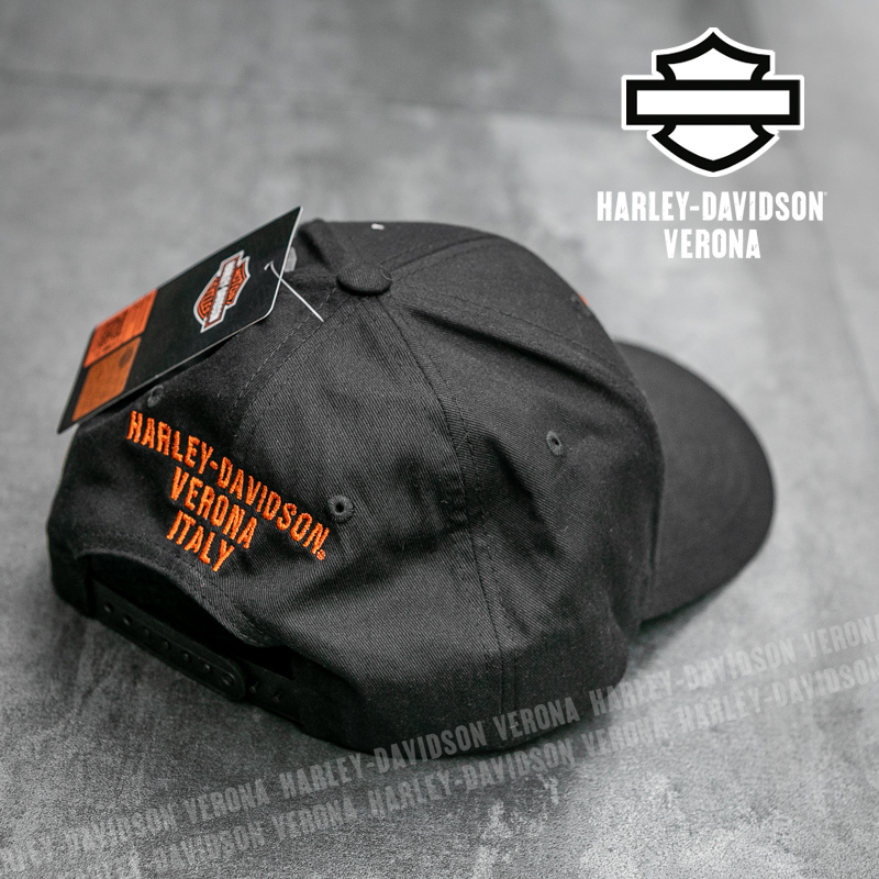 Indossa i colori di H-D® Verona! Nuovissima collezione di cappellini, perfetta per mostrare la tua appartenenza alla famiglia Harley-Davidson Verona o per un ricordo unico della tua visita alla città di Romeo e Giulietta!
