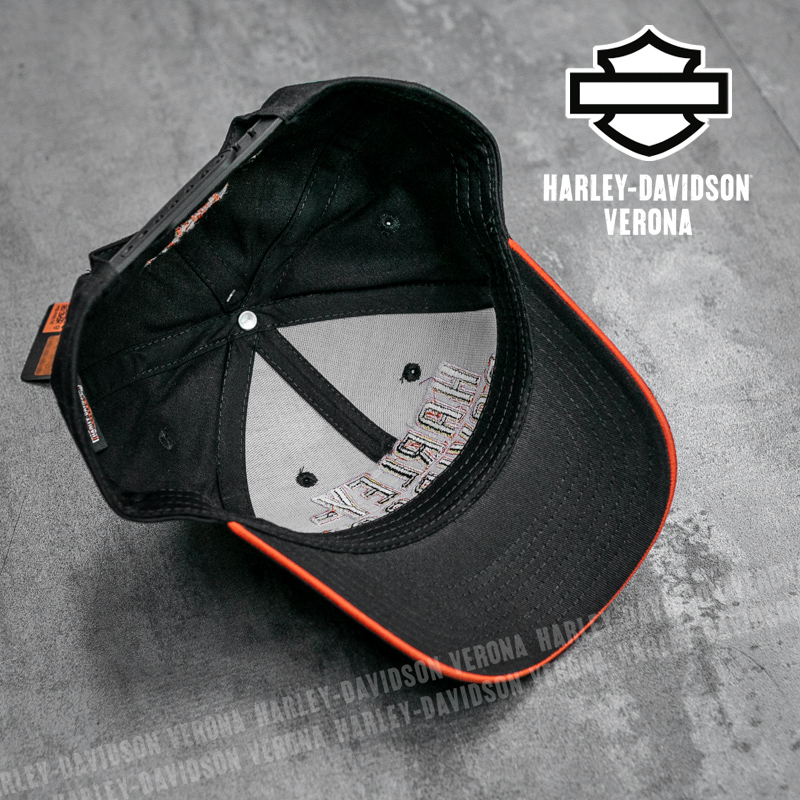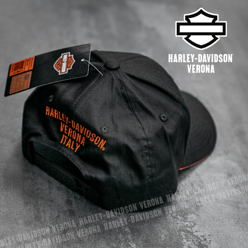 Indossa i colori di H-D® Verona! Nuovissima collezione di cappellini, perfetta per mostrare la tua appartenenza alla famiglia Harley-Davidson Verona o per un ricordo unico della tua visita alla città di Romeo e Giulietta!