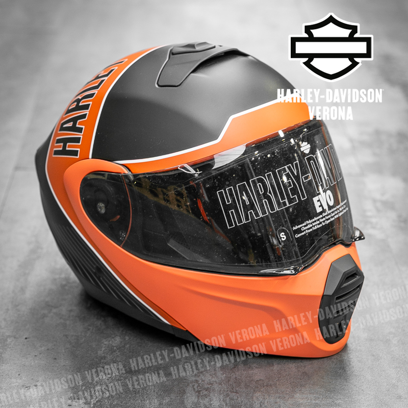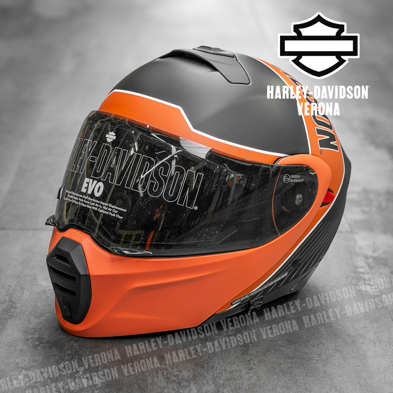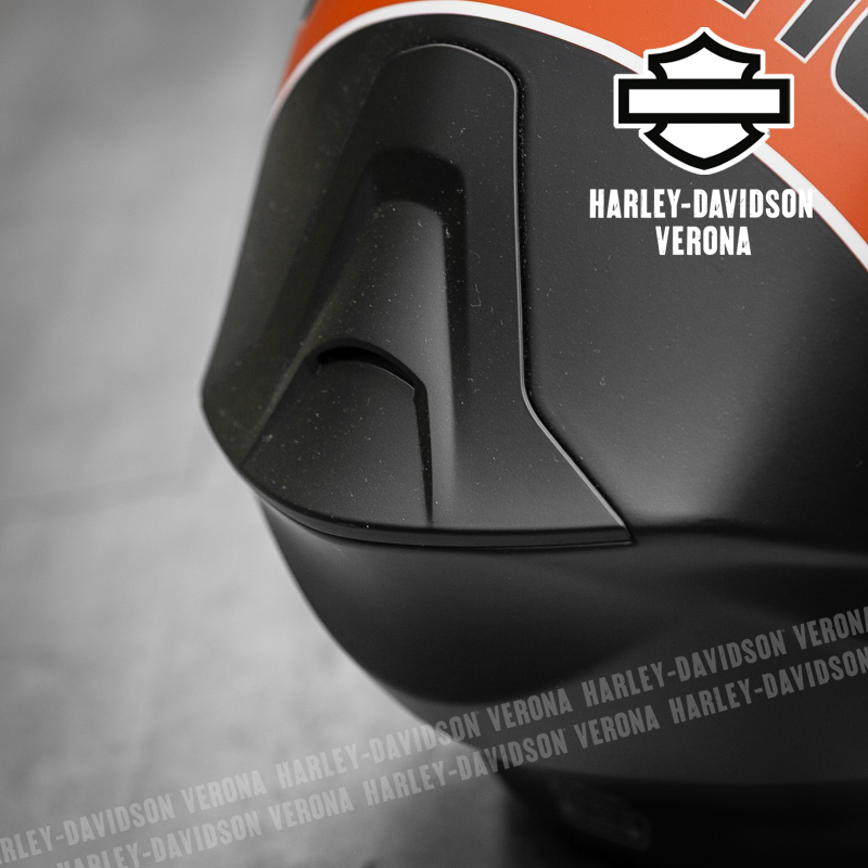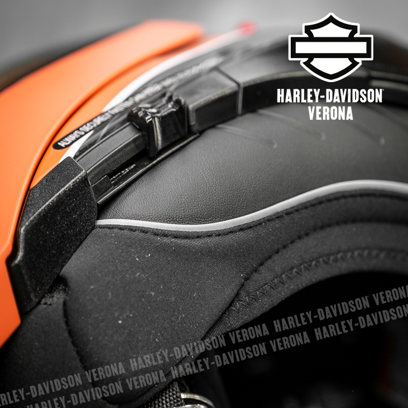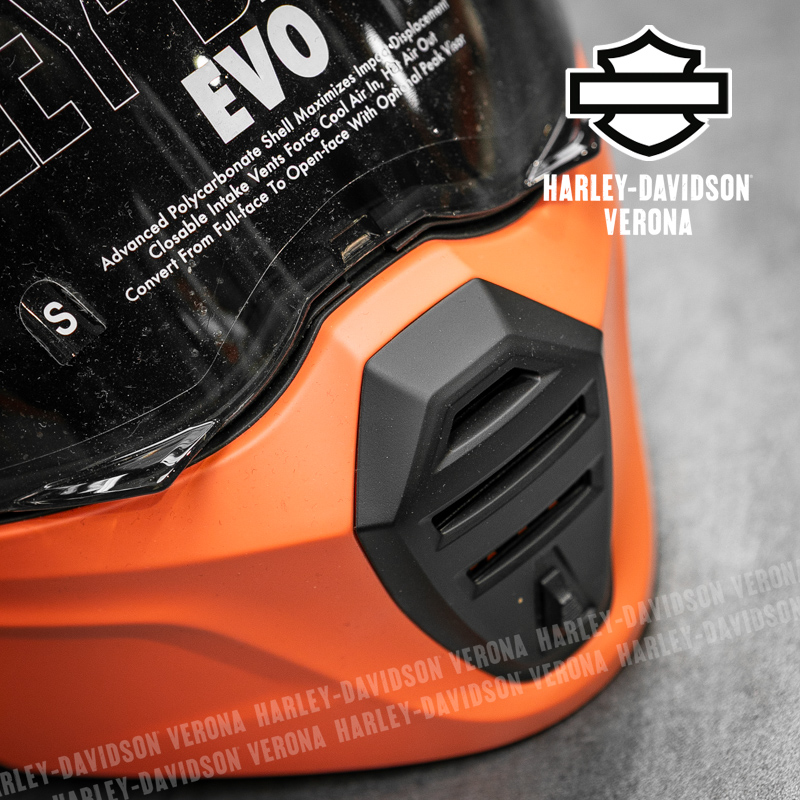 Indipendentemente dalle condizioni di guida, la protezione e il comfort sono due priorità assolute nel nostro casco modulare H-D Evo X17 Sun Shield in edizione limitata. La calotta è fabbricata in policarbonato composito ed è provvista di prese d’aria regolabili (sul mento, sulla sommità e sullo spoiler posteriore) e di mentoniera rimovibile, per essere trasformato in un casco 3/4 aperto. Dispone di protezione anti appannamento e anti raggi UVA/UVB, di un sistema di aggancio-sgancio a cricchetto che sigilla la visiera con un movimento ellittico e di una fodera traspirante e rimovibile che ti mantiene asciutto quando fa caldo e al caldo quando il termometro scende. Il branding in colori vivaci e lo schema a blocchi di colore gli danno un inconfondibile look Harley-Davidson. Ordinalo oggi stesso, perché le scorte sono limitate!