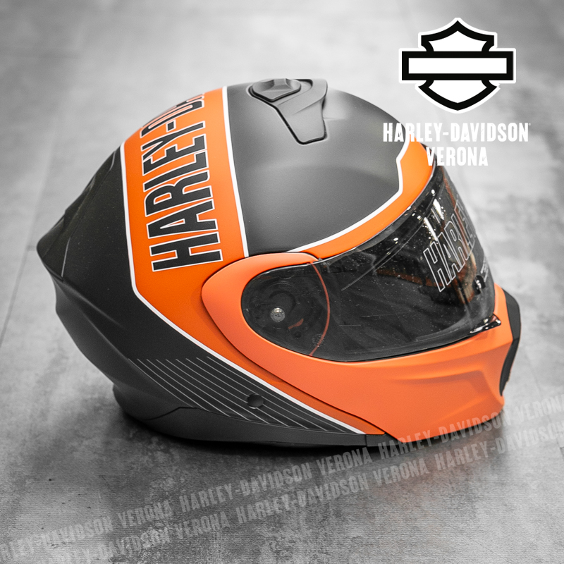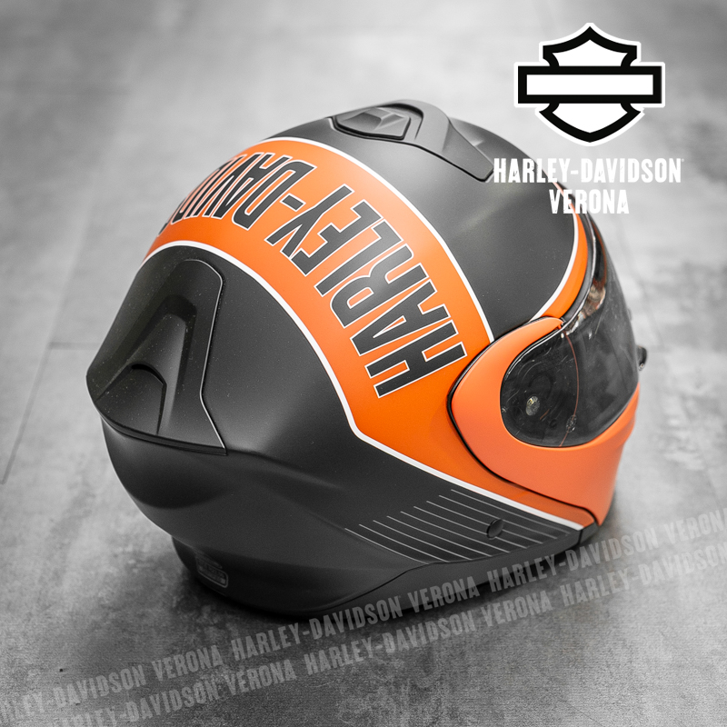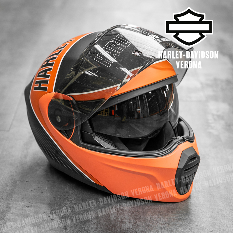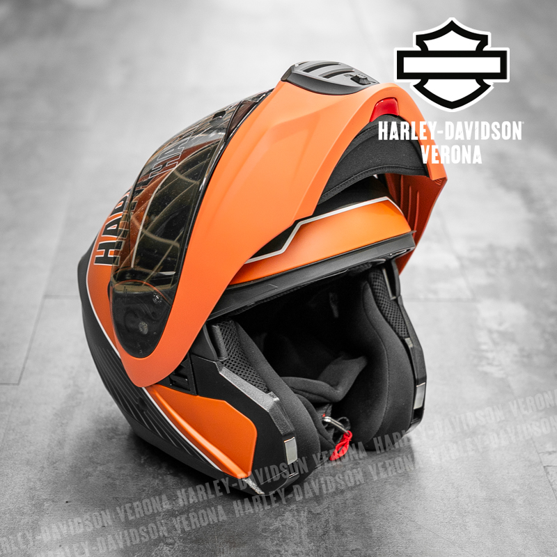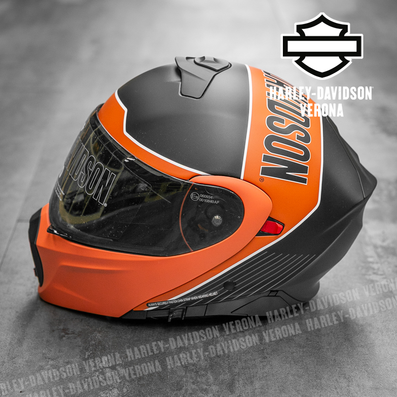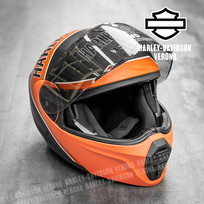 Indipendentemente dalle condizioni di guida, la protezione e il comfort sono due priorità assolute nel nostro casco modulare H-D Evo X17 Sun Shield in edizione limitata. La calotta è fabbricata in policarbonato composito ed è provvista di prese d’aria regolabili (sul mento, sulla sommità e sullo spoiler posteriore) e di mentoniera rimovibile, per essere trasformato in un casco 3/4 aperto. Dispone di protezione anti appannamento e anti raggi UVA/UVB, di un sistema di aggancio-sgancio a cricchetto che sigilla la visiera con un movimento ellittico e di una fodera traspirante e rimovibile che ti mantiene asciutto quando fa caldo e al caldo quando il termometro scende. Il branding in colori vivaci e lo schema a blocchi di colore gli danno un inconfondibile look Harley-Davidson. Ordinalo oggi stesso, perché le scorte sono limitate!