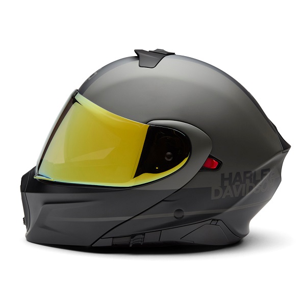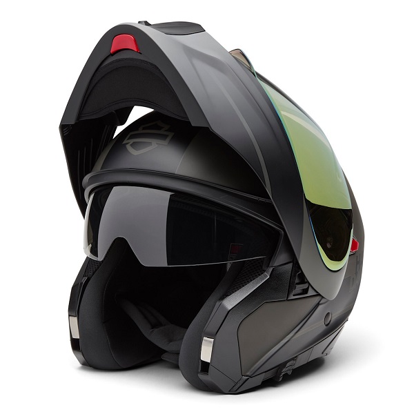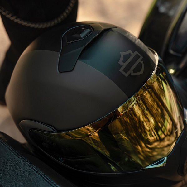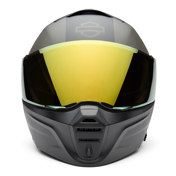 Areazione, protezione, versatilità! Il nostro ultimo casco modulare H-D™ Evo X17 Sun Shield soddisfa tutti questi requisiti e molto altro ancora. La struttura in materiale termoplastico ha aperture d’areazione regolabili sul mento, sulla parte superiore e sullo spoiler posteriore, protezione UVA/UVB sulla visiera parasole e sulla visiera con rivestimento a specchio dorato e la mentoniera completamente rimovibile che si trasforma istantaneamente da una configurazione modulare a una configurazione aperta a 3/4. Questo casco è inoltre dotato di un sistema a cricchetto che non richiede attrezzi e che sigilla correttamente la visiera con un movimento ellittico, nonché di una fodera traspirante facile da rimuovere e lavare. Le finiture Matte Harley Black e Black Olive completano la nostra grafica per un look motociclistico contemporaneo.