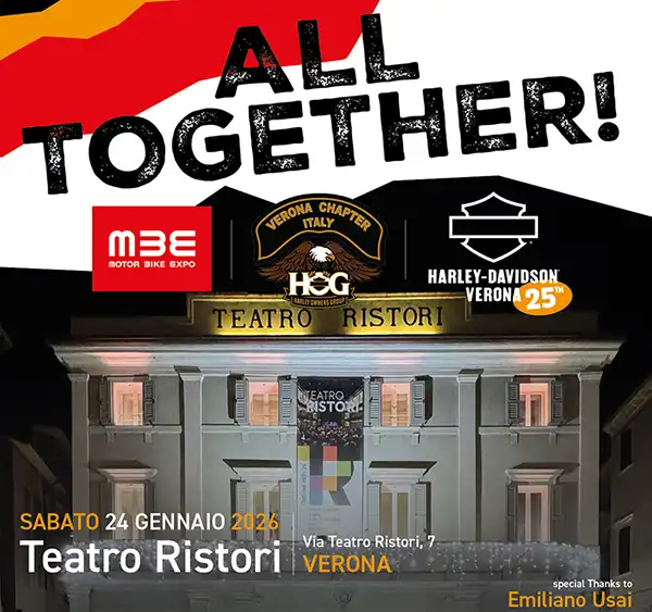 harley-davidson-verona MODULO DI PARTECIPAZIONE ALL’EVENTO ALL TOGETHER MBE 2026 Registrati subito per avere un posto il 24 GENNAIO 2026 all’evento Programma SABATO 24 GENNAIO 2026 TEATRO RISTORI di Verona, Via Teatro Ristori n°7 Accoglienza dalle ore 19:30 Servizio guardaroba compreso Aperitivo Cena a Buffet con posti a sedere dalle ore 20:30 Termine cena ore 21:30, […]
