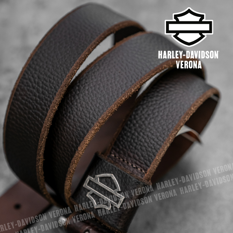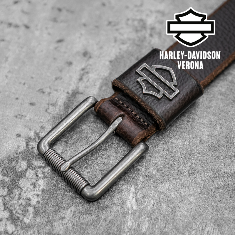 Cintura in pelle Harley-Davidson® Open Bar & Shield Distressed Brown