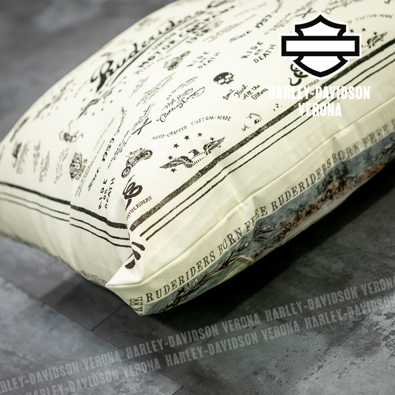 Cuscino Iconico della collezione Rude Riders, il cui design è ispirato al mondo del Street-Surf della Baja California, del pericolo come stile di vita. Realizzato in cotone 100% con imbottitura sfoderabile, misura cm 70×70. Consigliamo il lavaggio delicato. 100% Made in Italy.
