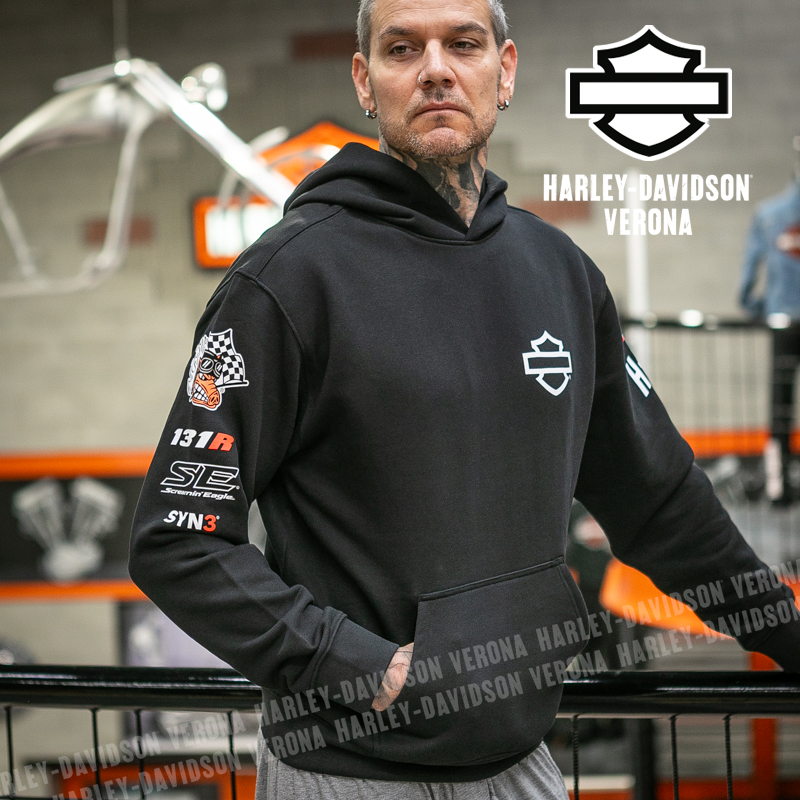Questa felpa con cappuccio ispirata al mondo delle corse ti offre il massimo del comfort e una vestibilità rilassata. Realizzata in spugna 100% cotone premium da 460 g, ha il cappuccio a doppio strato senza cordino, la tasca a marsupio e finiture in maglia a costine di alta qualità su polsini e orlo per mantenere la forma. Ulteriori dettagli sono le doppie cuciture di rinforzo su tutte le cuciture principali, la fettuccia interna in jersey arancione a contrasto sulla cucitura interna del collo e le grafiche stampate a mano morbida su davanti, dietro e maniche. Vestibilità e mobilità: oversize rilassata con cucitura spalla scesa.