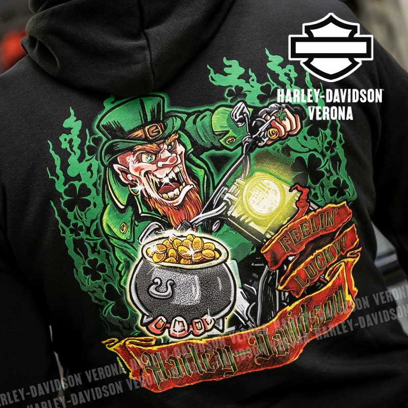 Una pentola d’oro, un folletto ribelle, un emozionante giro in moto: questa felpa con cappuccio in edizione limitata è stata realizzata apposta per la festa di San Patrizio (17 marzo). Morbido pile di cotone 64% e poliestere 36%, vestibilità comoda, cappuccio con coulisse foderato in jersey, polsini e orlo a costine e ampia tasca a marsupio. La sua grafica stampata rappresenta la nostra versione di questa festa. Acquistala prima che la fortuna finisca!