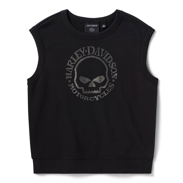 Quest’estate, dimenticate le maniche e lasciatevi conquistare dalla brillantezza! Realizzata in felpa misto cotone 64% e poliestere 36%, la nostra felpa senza maniche Willie G™ Skull Bling offre una vestibilità comoda e un tocco di stile che si discosta dalla classica felpa da donna. Ha i bordi a costine che mantengono la forma ed è rifinita con un teschio Willie G in strass sul davanti. Sebbene l’iconico teschio sia una delle sue creazioni più famose, Willie G. Davidson ha anche progettato diverse motociclette, tra cui il modello FX Super Glide® del 1971 e il modello FXS Low Rider® del 1977. Disponibile anche in bianco.