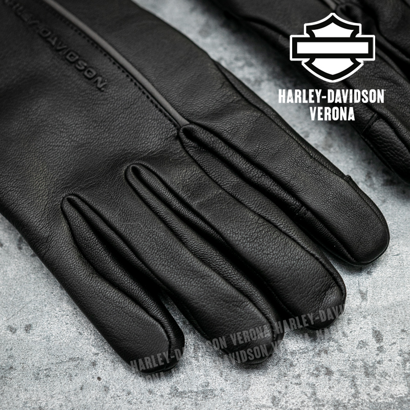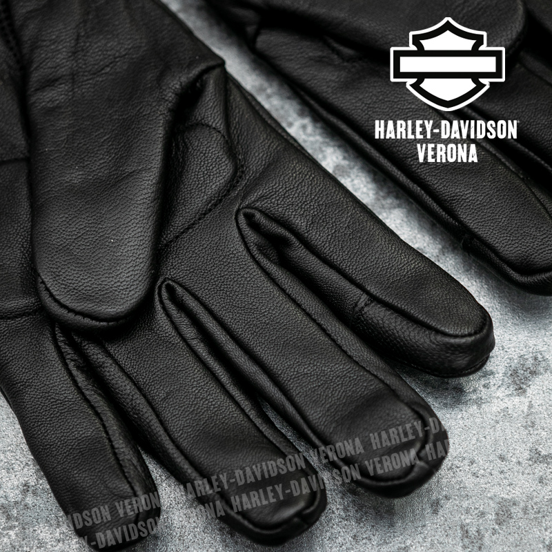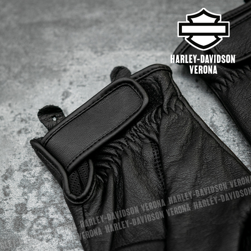 Guida nel massimo comfort anche quando il meteo non è dei migliori, con i nostri guanti da motociclista in pelle impermeabili H-D®. Realizzati in morbida pelle di capra, questi guanti da motociclista sono dotati di un inserto impermeabile per mantenere una presa asciutta e di un palmo imbottito per ridurre al minimo le vibrazioni della strada. Hanno il polsino regolabile chiuso da velcro, le dita pre-curvate a 30°, i polpastrelli compatibili con touchscreen e sono dotati di armatura D3O® Ghost™ sulle nocche per una maggiore protezione, oltre ad avere i dettagli riflettenti per una maggiore visibilità e sicurezza. Il marchio in rilievo è discreto, quindi puoi indossarli con qualsiasi tuo equipaggiamento da motociclista H-D®. Certificati EN 13594:2015, livello 1 con protezione delle nocche.