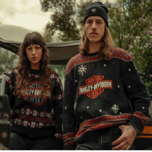 La tua passione non si attenua nemmeno sotto le feste? Allora, questo è il regalo giusto per te! Il maglione natalizio Harley-Davidson è realizzato in morbido filato di cotone 100% di peso medio. Ha scollo, polsini e orlo a coste e grafica personalizzata all-over in maglia a intarsio.