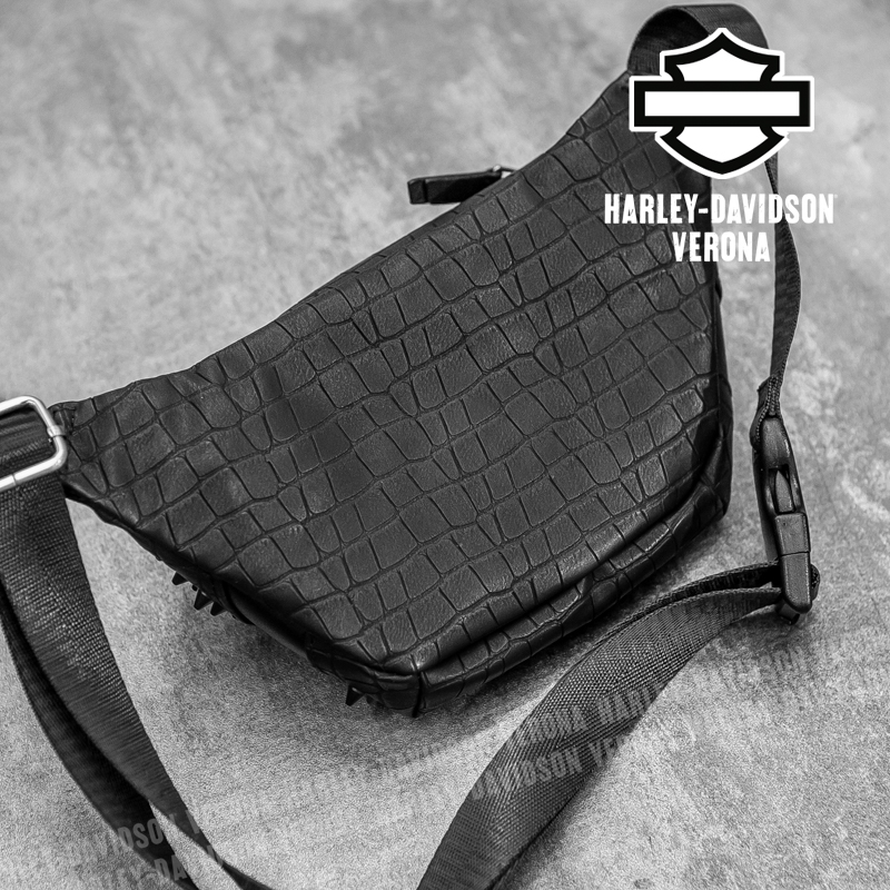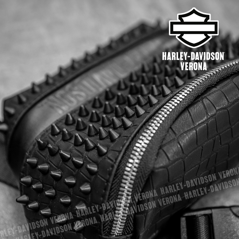 Marsupio Harley-Davidson® con borchie, un accessorio dal carattere deciso che unisce funzionalità e stile iconico. Realizzato con materiali resistenti, è impreziosito da borchie metalliche che richiamano l’inconfondibile anima rock del brand. Pratico e compatto, offre spazio sufficiente per portare con te l’essenziale, mantenendo le mani libere. Ideale per completare look casual o grintosi, è il dettaglio giusto per chi ama distinguersi e vivere la strada con personalità.