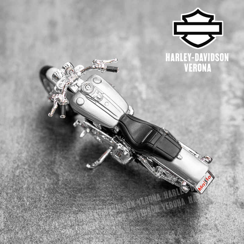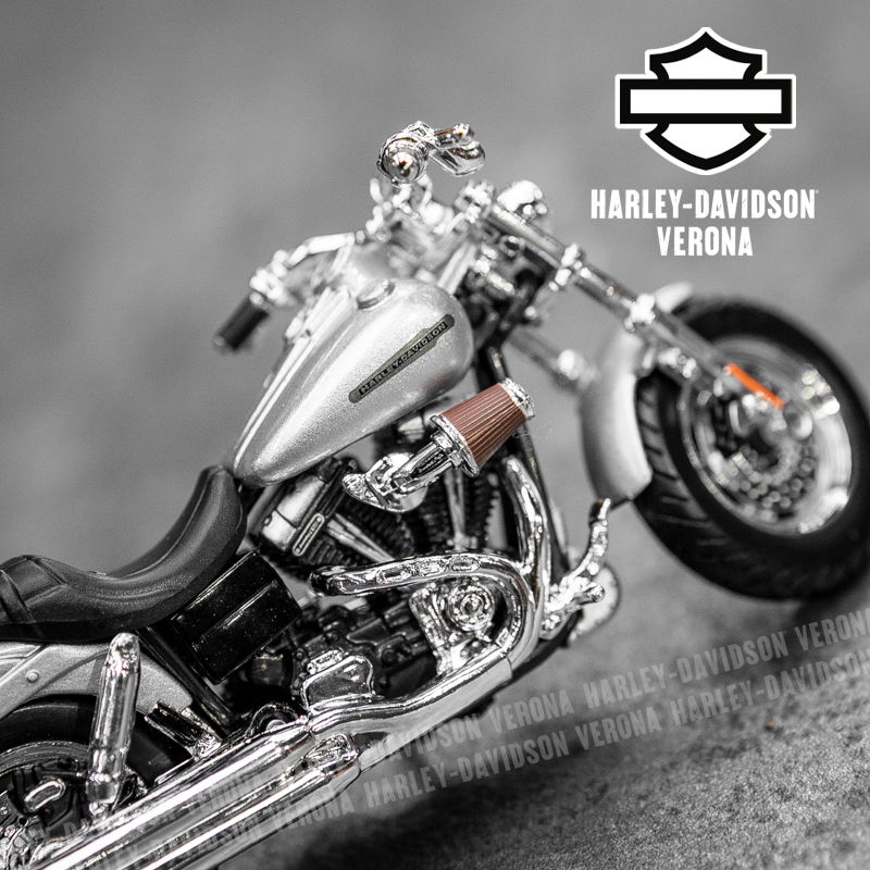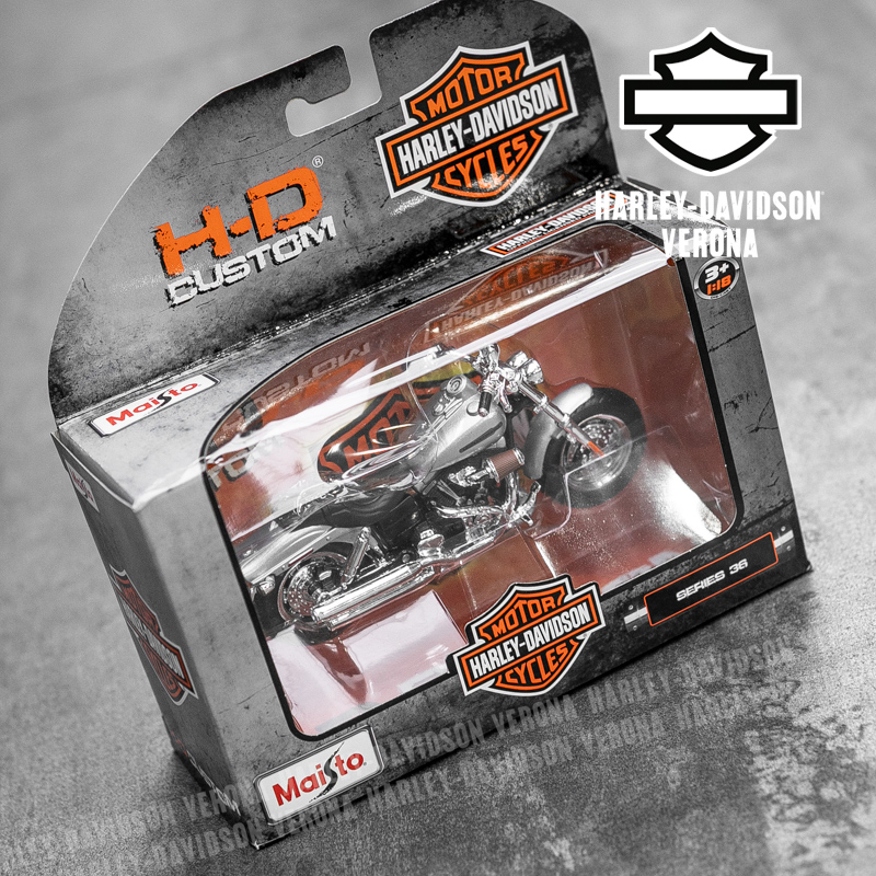 Modellino Harley-Davidson® FXDFSE CVO Fat Bob in scala 1:18 by Maisto. Questa versione ridotta della bellissima FXDFSE CVO Fat Bob del 2009 ha ruote girevoli, forcella sterzante e cavalletto laterale movibile. Dimensioni circa L-13, H-8, P-6 cm. Dai un’occhiata anche agli altri modellini!