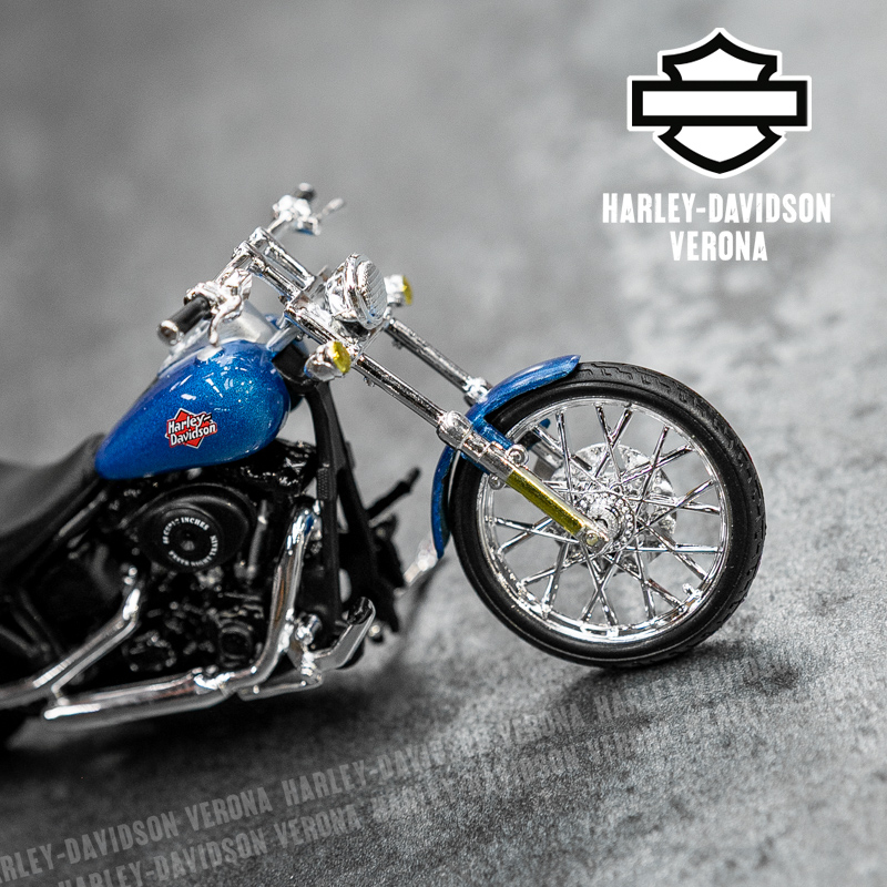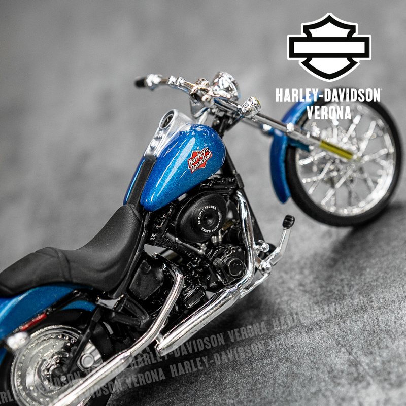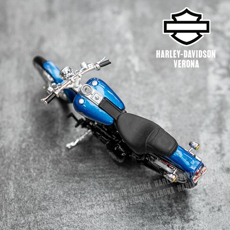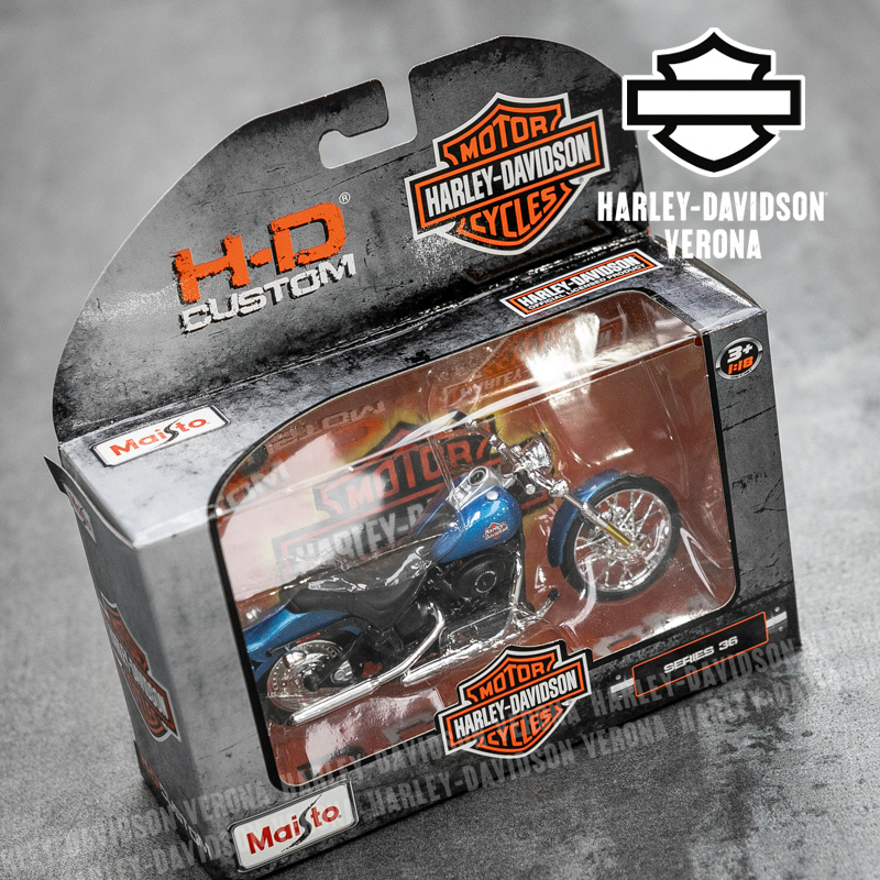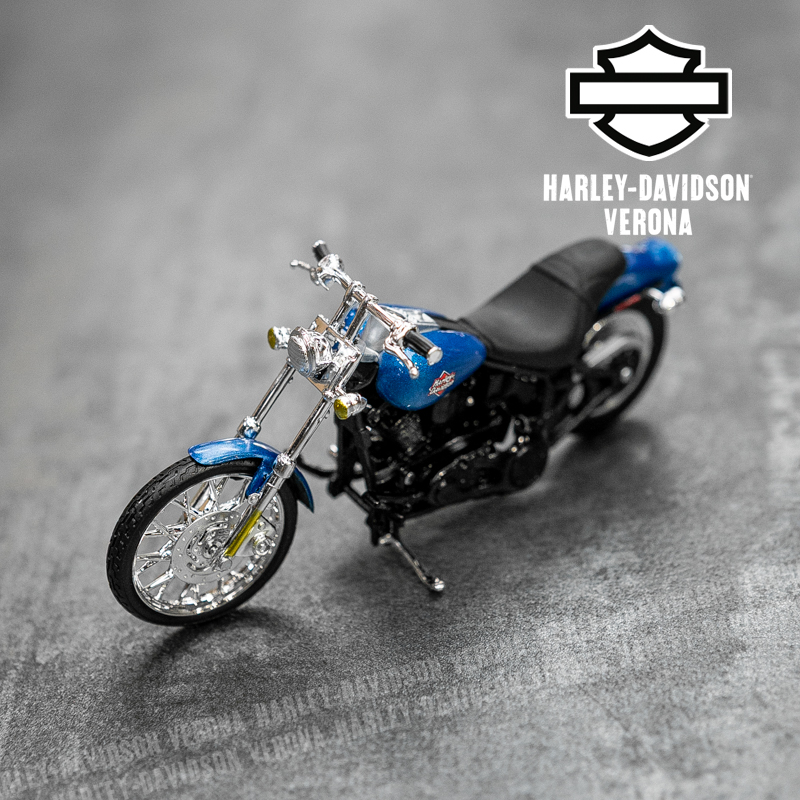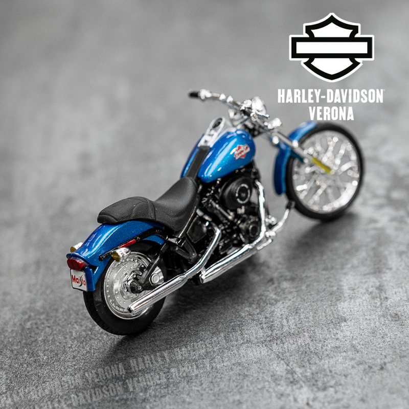 Modellino Harley-Davidson® FXSTB Night Train in scala 1:18 by Maisto. Questa versione ridotta della bellissima Night Train del 2002 ha ruote girevoli, forcella sterzante e cavalletto laterale movibile. Dimensioni circa L-13, H-8, P-6 cm. Dai un’occhiata anche agli altri modellini!