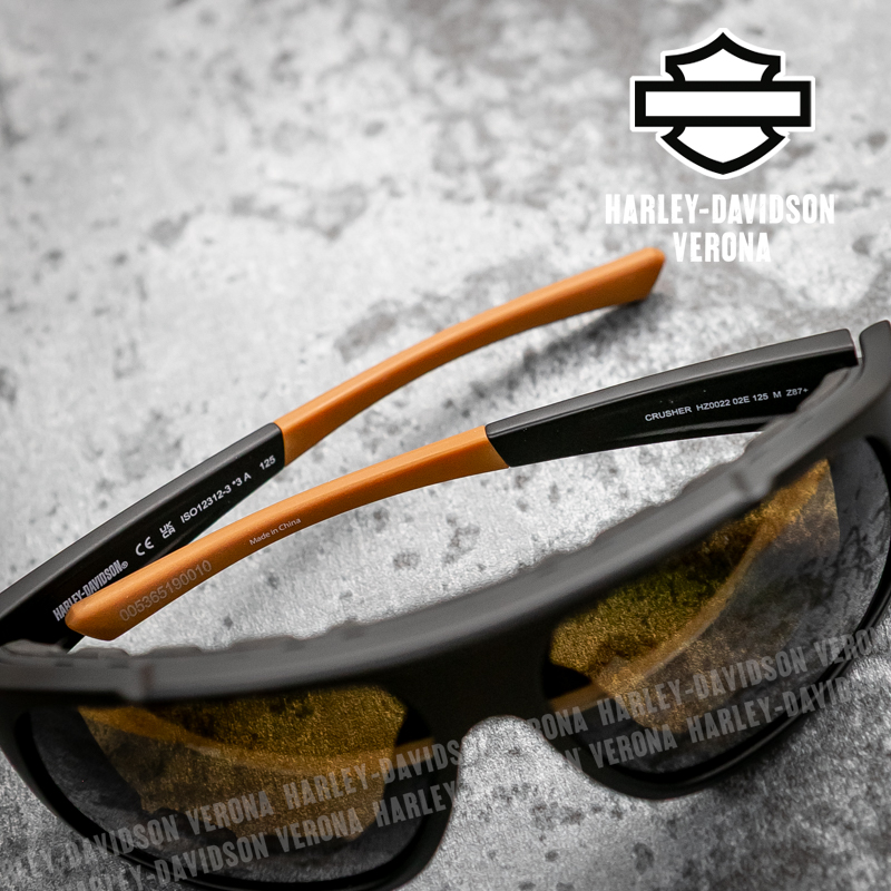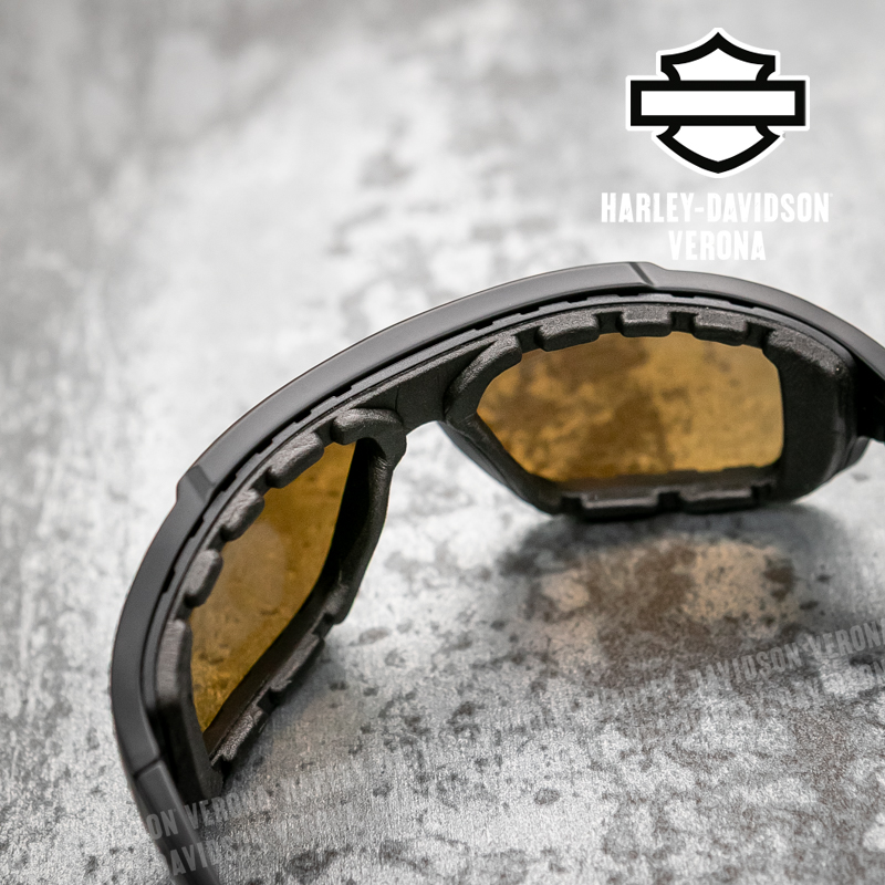 Occhiali da sole Harley-Davidson® Crusher con lenti migliorative di colore giallo, trattamento idrofobico che rende le lenti idrorepellenti e resiste alle macchie per prevenire possibili ostruzioni visive, protezione uv400.