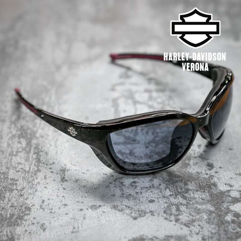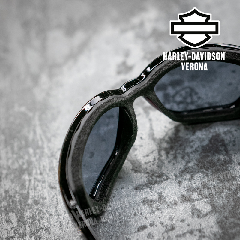 Occhiali da sole Harley-Davidson® by Marcolin, montatura nera con lenti in policarbonato fumé, trattamento idrofobico che rende le lenti idrorepellenti e resiste alle macchie per prevenire possibili ostruzioni visive, protezione UV400.