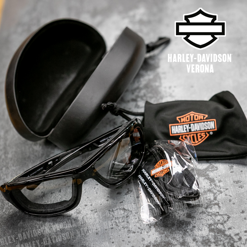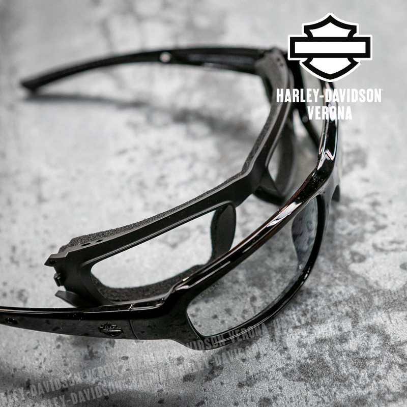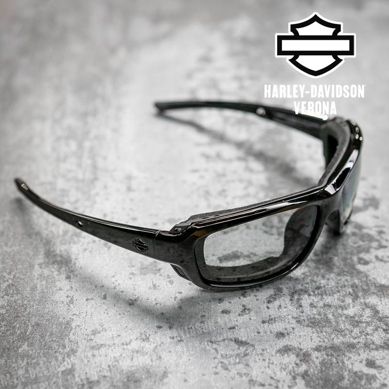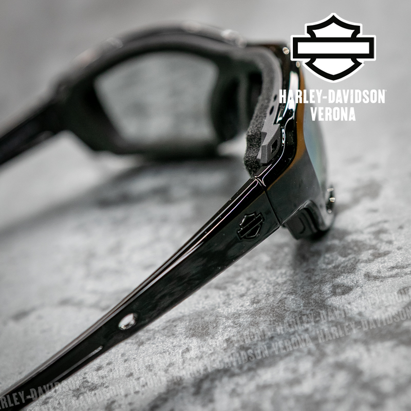 Occhiali da Sole Harley-Davidson® Alley con lenti Fotocromatiche. Le lenti fotocromatiche sono lenti che, esposte a radiazioni UV o luce solare in genere, avviano una reazione chimica reversibile e si scuriscono. Una volta che l’irradiazione di luce o raggi uv scompare ritornano gradualmente allo stato iniziale di trasparenza.