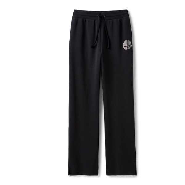 Fai risplendere il tuo stile casual con i pantaloni Willie G™ Skull Bling. Realizzati in felpa sgarzata di peso medio, misto cotone 64% e poliestere 36% per un comfort che dura, questi pantaloni sportivi da donna offrono una vestibilità comoda con gamba dritta e spacchetti all’orlo. Hanno la vita in maglia a costine dotata di coulisse e tasche laterali, sono rifiniti con il teschio di Willie G sul davanti e con il nostro marchio che scende lungo la gamba, il tutto realizzato in strass. Una pillola di storia: benché proprio il teschio sia una delle creazioni più famose di Willie G. Davidson, firmò anche diverse motociclette, tra cui la FX Super Glide® del 1971 e la Low Rider® FXS del 1977. Altezza cucitura interna: 80cm (31.5″).