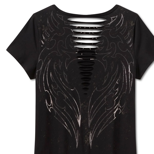 Sfoggia il tuo stile ribelle con la nostra maxi t-shirt con tagli orizzontali per un look davvero rock! Questa edizione speciale è realizzata in morbido jersey di cotone 95% con un tocco di spandex 5% per una maggiore elasticità. La silhouette a tunica offre una vestibilità versatile e valorizzante, con dettagli come gli spacchetti laterali, la scollatura profonda sul davanti, la grafica ispirata ai tatuaggi sul retro e le scritte impreziosite da accenti di strass. Lunghezza circa 80cm in taglia M. Prendi la tua, prima che esauriscano le scorte!