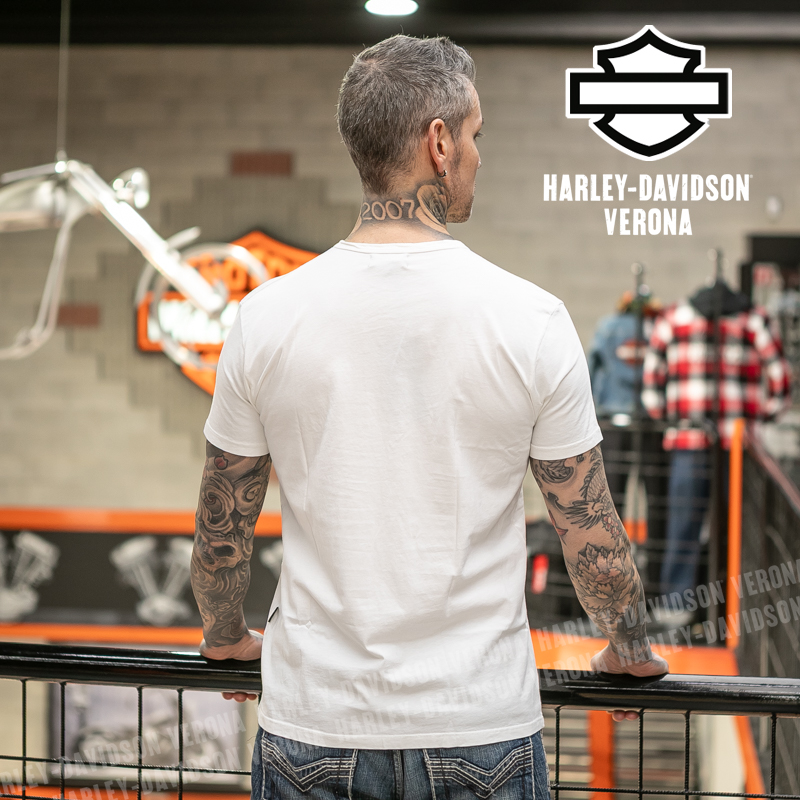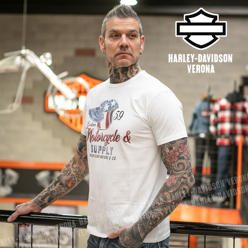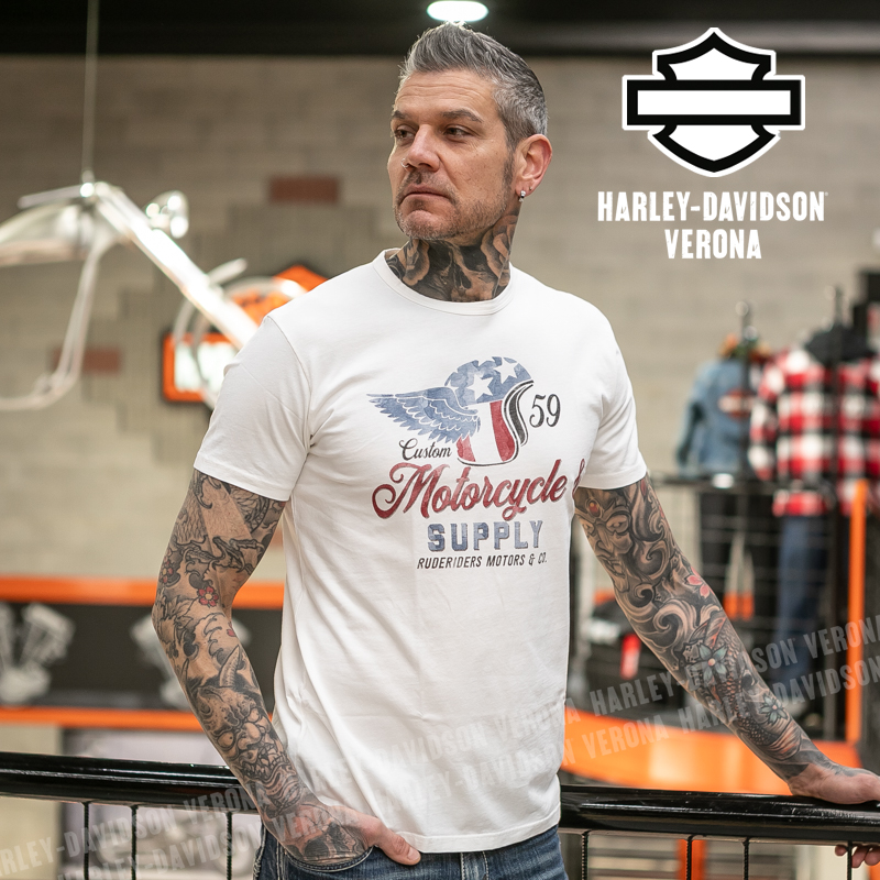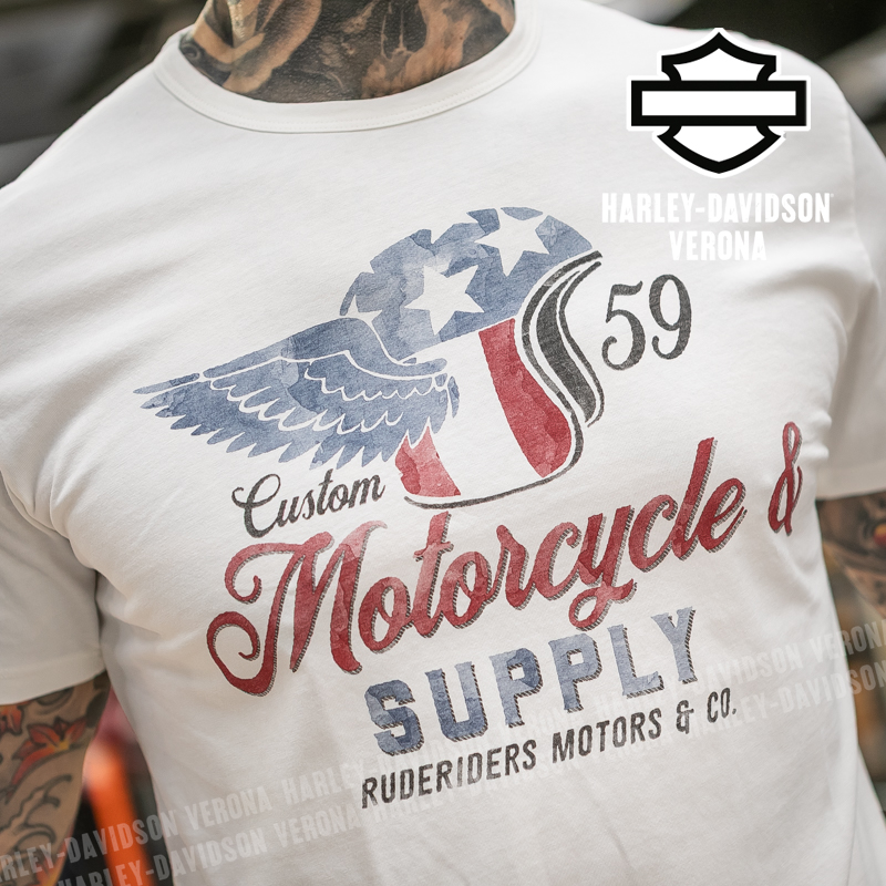 T-shirt Rude Riders in cotone 100%, sviluppata internamente da artwork originali disegnati a mano, ispirati dal film Easy Rider e dalla nostra passione per il mondo delle moto. Made in Italy, lavata per un look vintage, stampata con colori a base d’acqua. Consigliamo il lavaggio delicato. Regular fit. Sebastiano è alto 190 cm e indossa la taglia M.