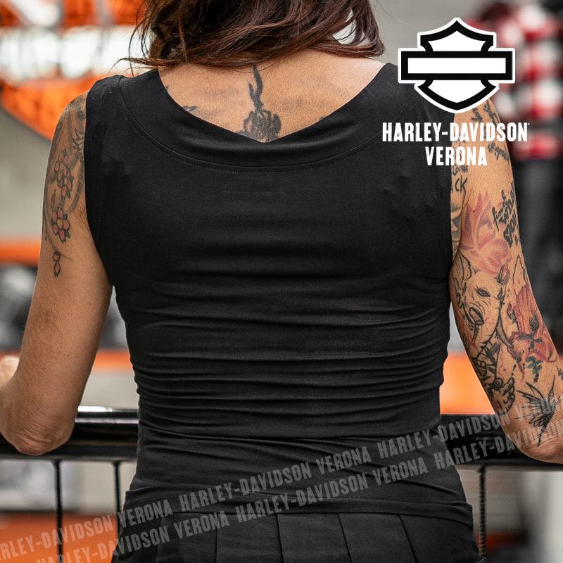 Top corto in morbido jersey misto rayon 94% e Spandex 6%. La sua silhouette sfiancata è abbellita dallo scollo a barchetta e dall’orlo risvoltato. La stampa digitale sul davanti è impreziosita da un motivo in strass.