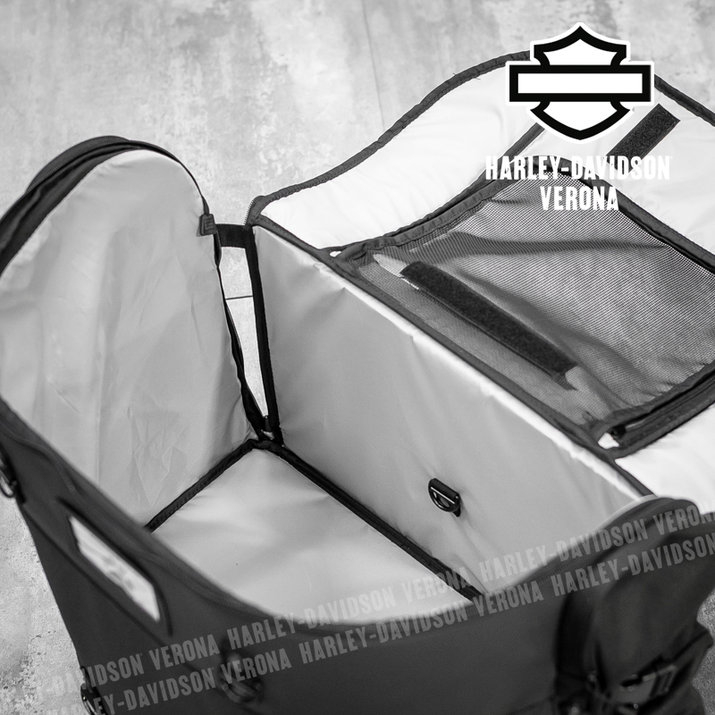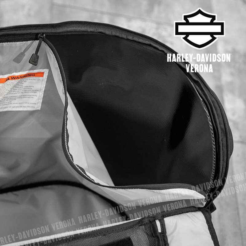 Al vostro animale domestico piace andare in moto? Questo trasportino è la soluzione più sicura, stilosa e confortevole per farlo viaggiare con voi. Posizionate il vostro animaletto all’interno del trasportino, assicuratelo alla moto e siete pronti per partire insieme lungo le strade del mondo! Questo trasportino ha più funzioni di quello che vi aspettate: un porta-bevande per voi e un supporto per la ciotola del vostro animale, la fodera rimovibile e lavabile, la cinghia integrata, due grandi scompartimenti e sezioni traforate per far passare la luce e garantire la ventilazione. La struttura è impermeabile e non necessita di copertura anti-pioggia. Il trasportino è montabile su sella passeggero o portapacchi e l’apertura superiore consente al tuo animale di godersi il paesaggio. Dotato di telaio interno resistente e fondo rigido, bordatura riflettente per una buona visibilità e pratica maniglia di trasporto, è anche facile da pulire grazie alle cerniere presenti sia sul fondo sia sull’apertura superiore, e può essere utilizzato anche come trasportino da viaggio.